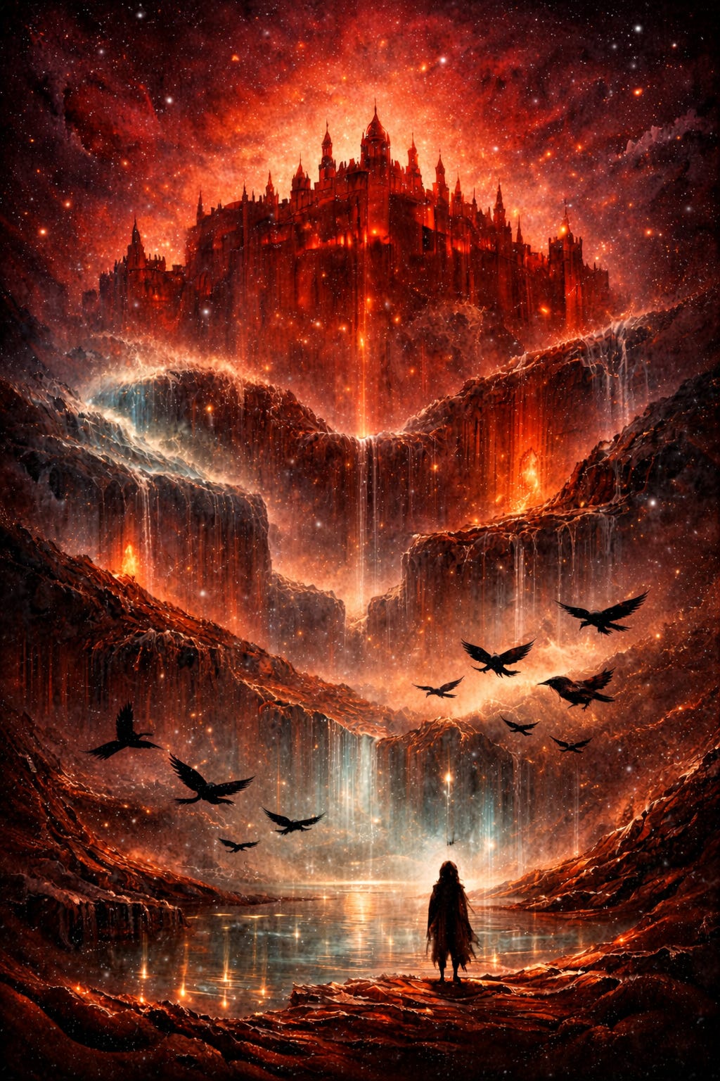 The beating heart is a walled city, a fortress raised in red. A dense population of sonic, molten dread. The people pool at the center, trading fractal, concentric thoughts. At night, the tide rolls in— bleeding against its shores. The halls are coiled arteries, lapped in sapphire walls. They lead them back to the center, to a glowing, looking pond. Inside a mirrored dimension, where spirits sometimes cross, black birds bring— on a string—its many numbered codes of pearl. The sound, a quaking shimmer, a muscle made of mind. And me, a trembling note— lost in rhythm’s line.