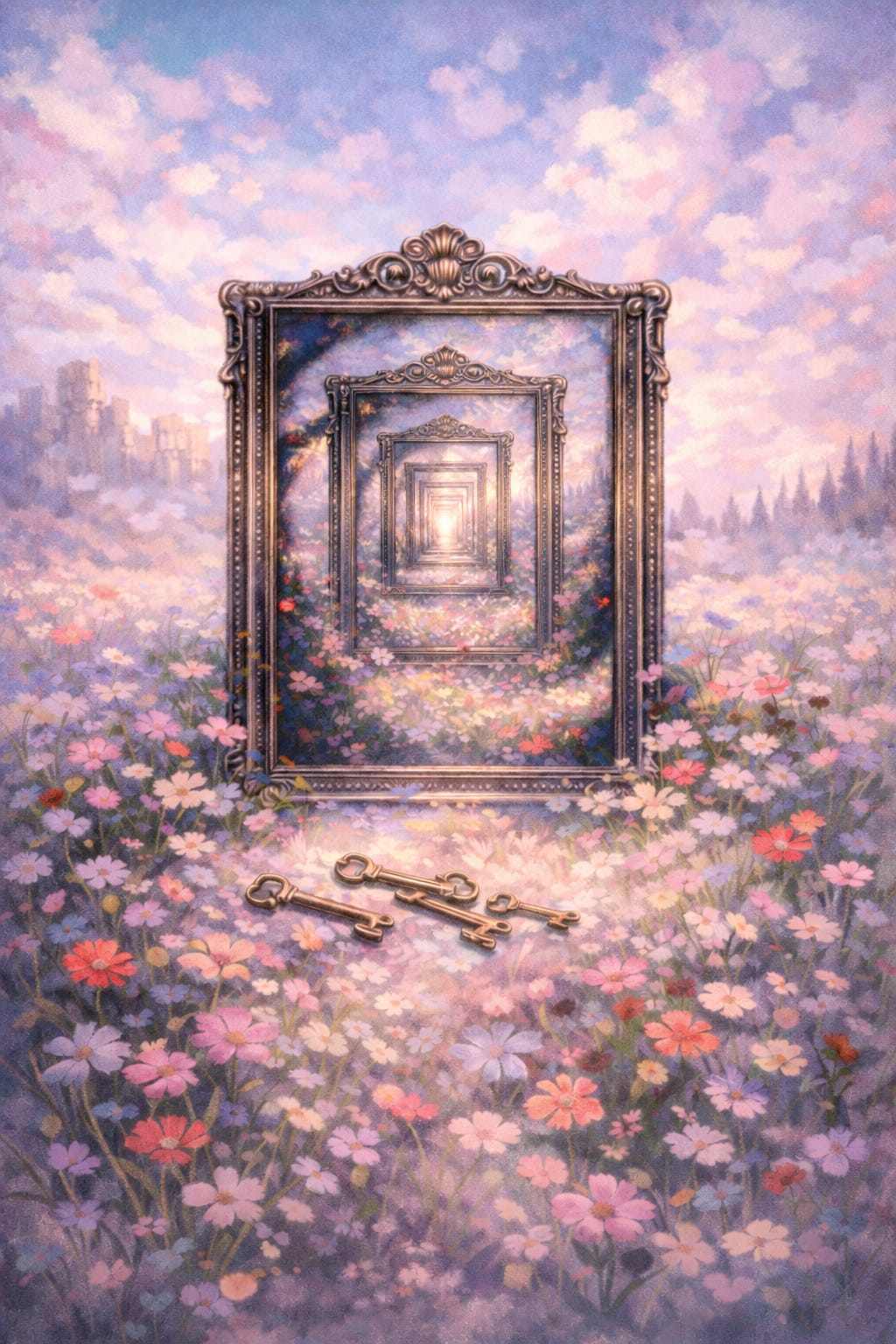 The rupture is a moving crater; it burrows deep within your core, finds a way to stop you, to smother you whole. You carry its silence in your belly— a blooming, blackened, throbbing stone. Your jaw braces, your chest tightens, your breath shortens, your mind heightens— climbing, climbing, climbing down your spine, unwinding. Your grip— whitens. Your mind panics, chanting: Don’t. Let. Go. A mantra to cast the darkness out. But the feeling is a clinging omen— a stolen future, you. It builds a city of aches and hollows, lets the wind scatter your ashes in seasons. “Nothing lasts” becomes doctrine, written in the skies, and your skies are always holding night— always dripping tar. How do you conjure day when all you know is void? Step through the mirror chamber. Surrender to the whole. Build an exorcism of thought. Let the moment that defined you be a prison left behind you. Your future is made of choices— a living string of keys, unlocking, unlocking, unlocking your mind in threes.